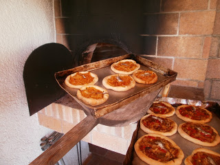Ah, mientras amasáis, el horno tiene que estar cogiendo temperatura. Mola hacerlo en horno de leña. Pero en horno doméstico también sale muy bien. Como el horno de casa es fácil, explico el de leña. Se llena de ramucha de piño y se pone a arder hasta que las paredes de ladrillo se ponen blancas. Entonces, y cuando estemos casi listos para poner las cocas, se apartan las brasas para dejar sitio a las bandejas y que no siga quemando. Con temperatura que haya alcanzado será más que suficiente. En el horno de casa, a toda mecha, con ventilador y a lo locoooooooo.