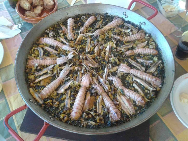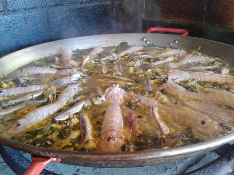 Ahora añadís los boquerones (los lomos, bien limpios), las galeras y las mollas de los caracoles. Poneís azafrán y sal a vuestro gusto y en veinte minutos tendréis una paella barroca pero efectiva.