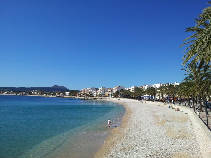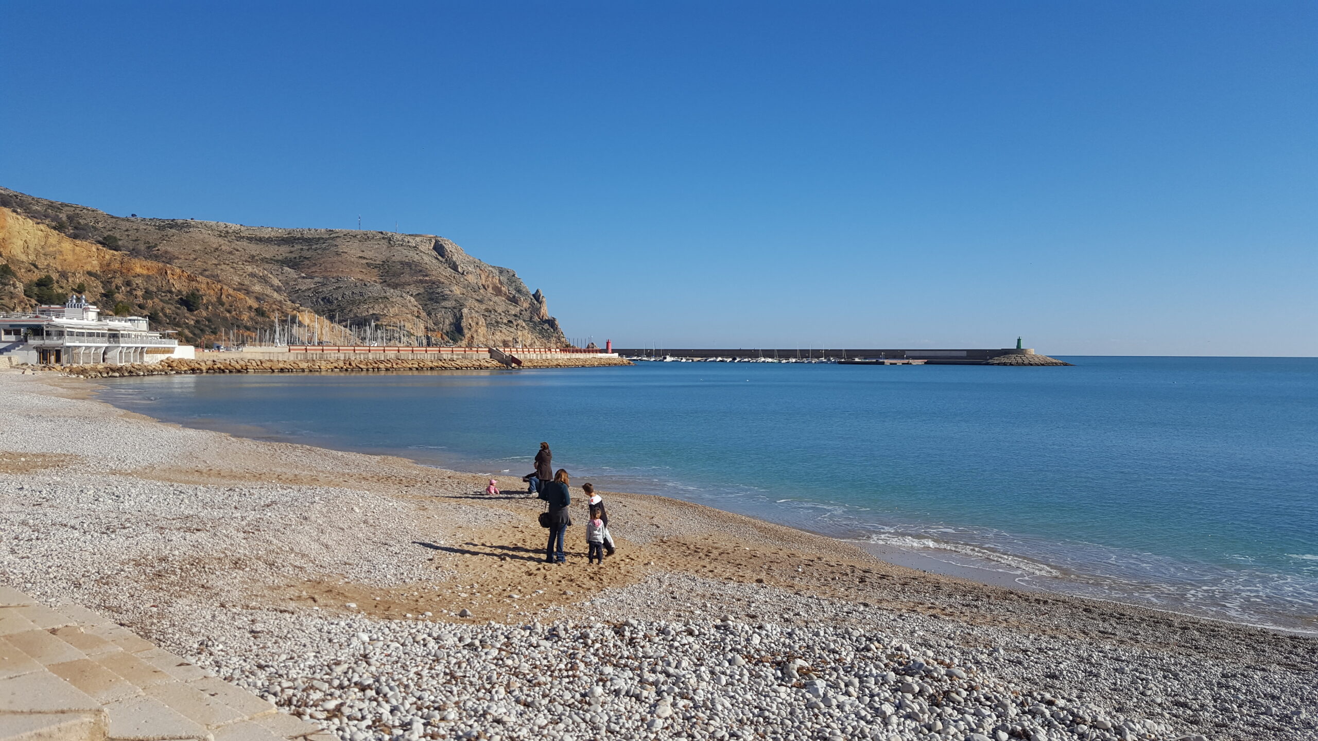 La playa de la Grava es de las más emblemáticas de Xàbia y es la nuestra. Es la única playa urbana, de hecho, y aun así conserva un encanto natural increíble. Desde ella el horizonte se cierra con el cabo de Sant Martí a la izquierda y el puerto y el cabo de Sant Antoni a la derecha. Como es de roca, además, suele estar limpia y transparente y es fácil ver un montón de peces en cuanto entras tres o cuatro metros. Si te fijas bien en las rocas fácil que también detectes pulpos o sepias.